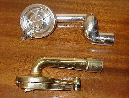 The Edison phonograph came with two needle heads. The gold colored one on the bottom is for the original (and older) Edison records, the silver one for the newer, more common disks. Edison disks were cut in an up-and-down motion. The sound for an Edison is reproduced by a diamond needle that rides along the bumps in the bottom of the groove. The needle is attached to a thin diaphragm that vibrates within a long horn. to a horizontal diaphragm. Later, common records were cut with a side-to-side motion instead of up-and-down. Both techniques use a physical connection between a diamond chip, or a very sharp steel needle. rare easuily identified; they are about ¼ inch thick. The grooves are cut on the bottom, and a diamond needle mounted on the bottom of the head, moves up and down in the groove. The needle is connected to a diaphragm in the head, which produces the sound. The silver colored head is the modern and more common head. It plays the regular 78 rpm records cut with a lateral groove.